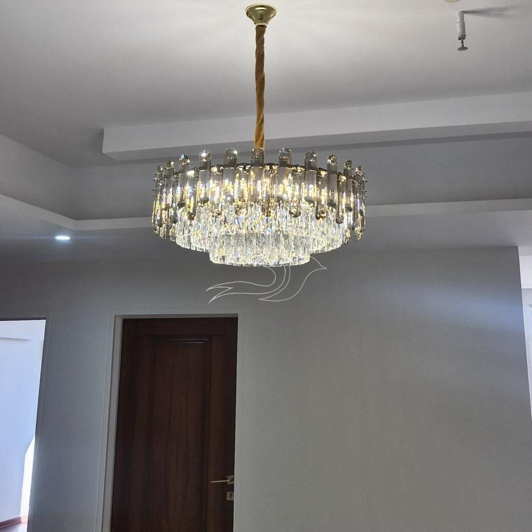 - کریستالهای تراش خورده و وارداتی: اطراف لوستر کریستالهای بزرگ به رنگ شامپاینی و وسط لوستر کریستالهای کلیپس دو طرف تراش درجه یک به رنگ سفید شفاف ، برای انعکاس نور و درخشندگی بیشتر