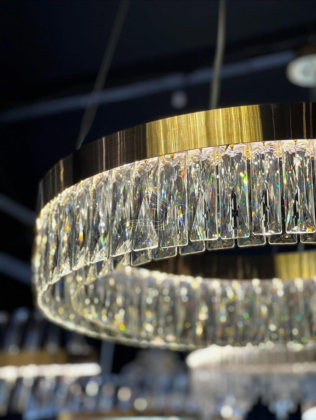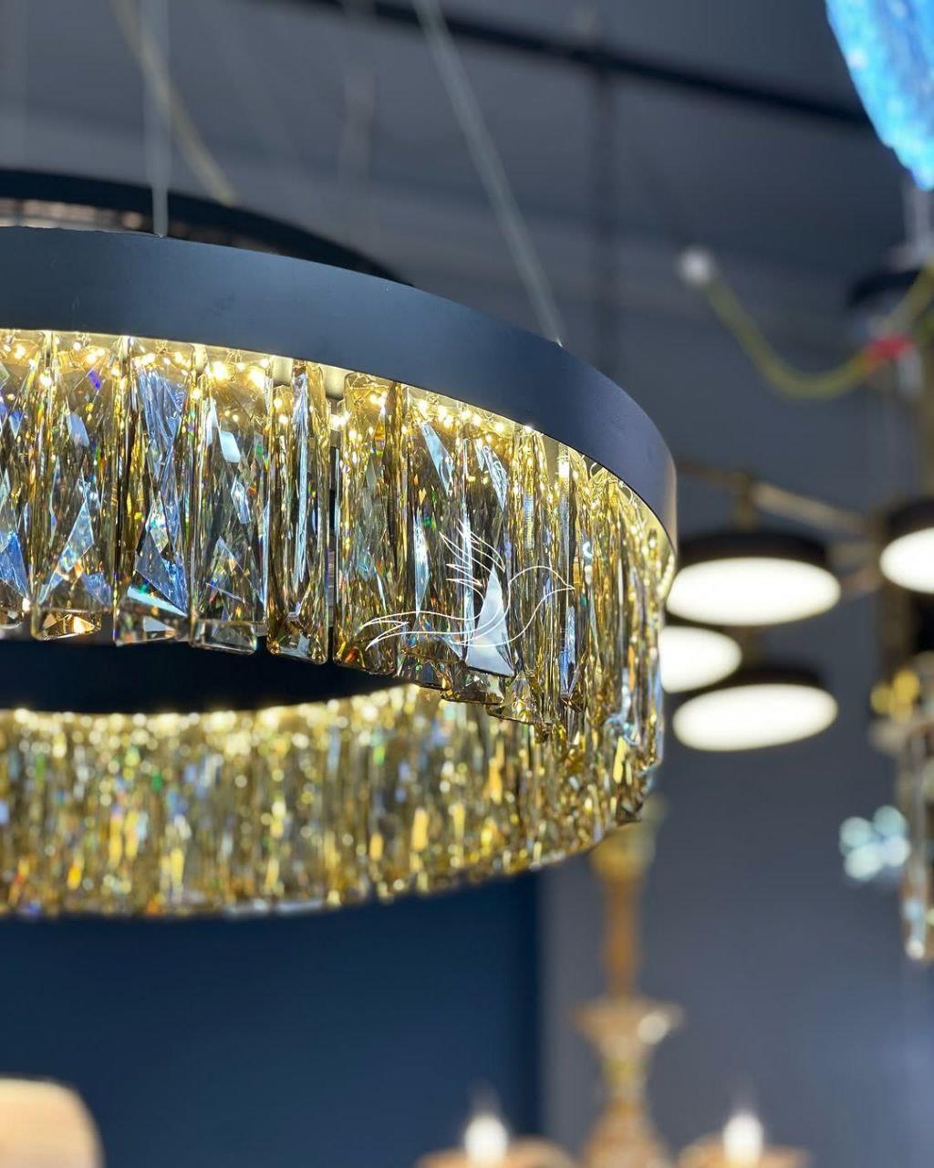 دارای کریستالهای درخشان است که نور را به زیباترین شکل بازتاب میدهد. بدنه فلزی با رنک بندی مشکی استاتیک ، آبکاری براق و کریستالهای تراشدار، جلوهای لوکس و چشمنواز به فضای شما میبخشد. مناسب برای سالن، پذیرایی و فضاهای مدرن.