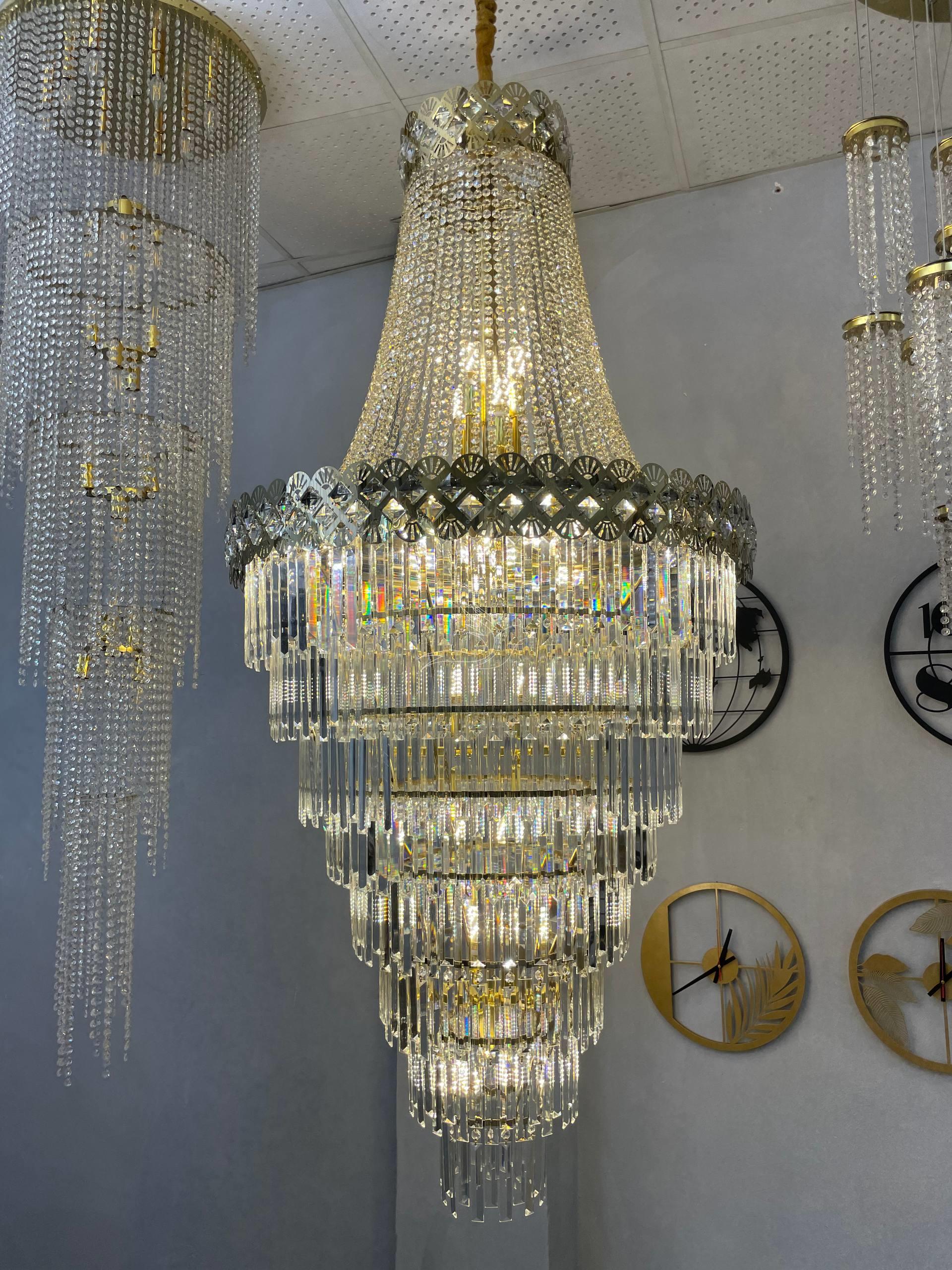 این مدل با تعداد زیاد جالامپی ،نوری پرقدرت و یکنواخت را به محیط میدهد و برای سالنهای دوبلکس، لابی، راهپلههای بلند و فضاهای پذیرایی لوکس گزینهای ایدهآل است.
